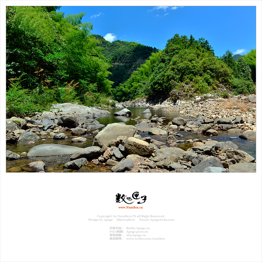 清水溪的溪滩宽阔,落差很小,沿岸没有象样的瀑布,唯一的特色就是溪水平静,峡谷中青山流水、溪滩空旷、鸟鸣谷幽的意境是最大的特色。在宁海白溪上游的三条著名溪流之中,大松溪最清、沿溪瀑布最多,但下段已被开发成浙东大峡谷;浑水溪最美、最原始,但被黄龙水库生生截断;清水溪最大,但也最脏,但在我的照片中依然令人迷醉。